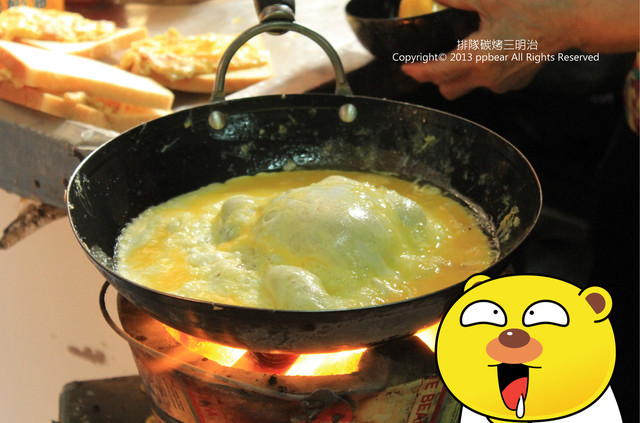 丫嬤從打蛋、煎蛋、到烤三明治都自己來