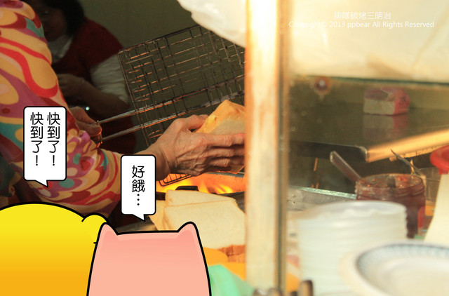 又過了十分鐘…終於…看到老闆的手在烤三明治了…(這時肚子超餓的…)