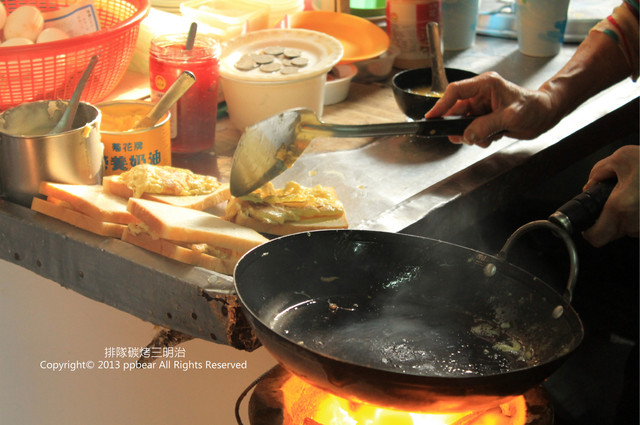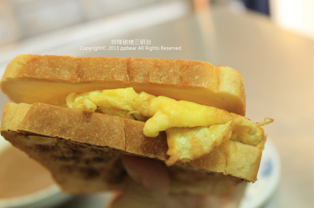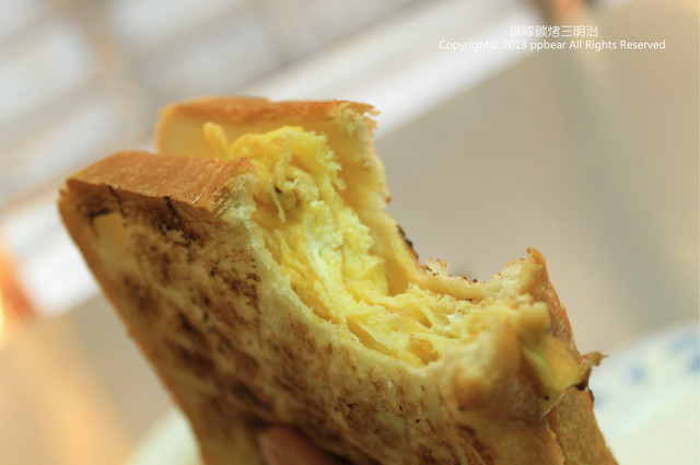 兩片塗過奶油的土司夾著煎蛋,散發出炭火烤過的香味~